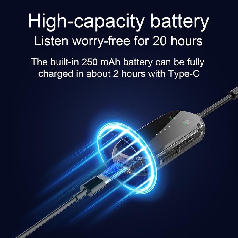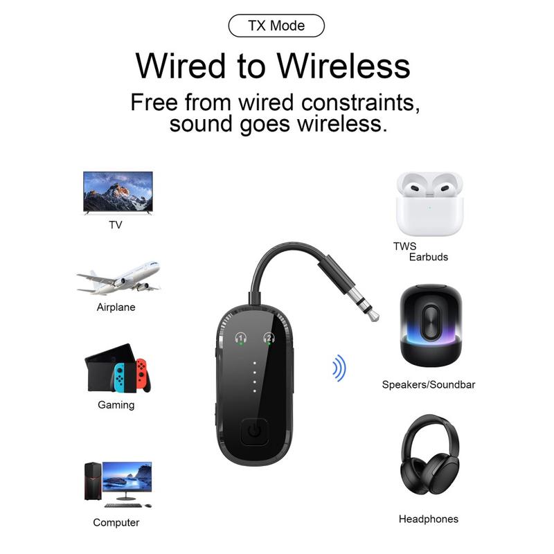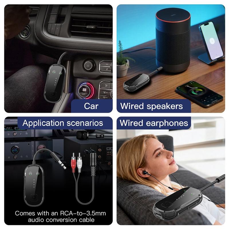 Se on myös loistava vaihtoehto ihmisille, jotka haluavat jatkaa vanhempien kaiuttimien, stereojen, televisioiden tai auton äänijärjestelmien käyttöä luopumatta moderneista langattomista yhteysvaihtoehdoista. Hyvän akunkeston, helpon Type-C-latauksen, automaattisen uudelleenkytkennän ja käytännöllisten mukana toimitettujen lisävarusteiden ansiosta se tarjoaa yksinkertaisen tavan tehdä langallisista äänijärjestelmistä entistä hyödyllisempiä.