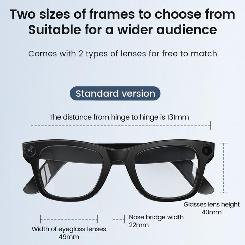 E02-älykkäät tekoälylasit yhdistävät edistyksellisen teknologian ja jokapäiväisen käytännöllisyyden ja tarjoavat valokuvauksen, reaaliaikaisen käännöksen, tekoälyn kohteiden tunnistuksen ja ääniominaisuudet kaikki yhdessä puettavassa laitteessa. Nämä lasit on varustettu 8 megapikselin Sony-kaksoislinssikameralla ja tekoälyllä varustetulla tärinänestovakautuksella, ja ne kuvaavat 1080P HD-videota ja valokuvia poikkeuksellisen kirkkaasti. Integroidut mikrofonit ja kaiuttimet mahdollistavat handsfree-puhelut ja musiikin toiston, jolloin erillisiä kuulokkeita ei tarvita. Intuitiiviset kosketusohjaimet, pitkä akun kesto ja ergonominen kevyt muotoilu tekevät E02:sta täydellisen mallin matkailijoille, luovan työn tekijöille ja ammattilaisille, jotka haluavat suorituskykyä ja tyyliä yhdessä.