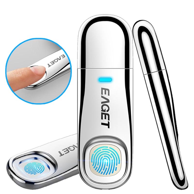 - Sormenjälkisalauksella varustettu Eaget FU60 USB 3.0 -muistitikku