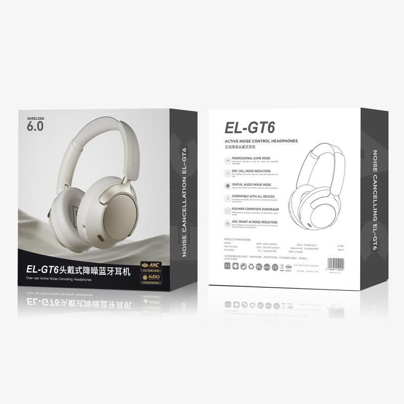 Langattomat melua vaimentavat langattomat kuulokkeet EL-GT6 ANC tarjoavat upean äänen ja pitkäaikaisen käyttömukavuuden niin pelaajille, musiikin ystäville kuin ammattilaisillekin. Kehittyneessä ANC 3.0 -teknologiassa, jossa on mukautuva melunvaimennus, ne estävät häiriötekijät ja parantavat kuuntelukokemusta. 40 mm:n dynaamisilla ohjaimilla ja mikrokiteisillä komposiittikalvoilla varustetut kuulokkeet tuottavat syviä bassoja, selkeitä keskiääniä ja teräviä korkeuksia HiFi-äänenlaadun takaamiseksi. Bluetooth 6.0 -yhteyden, alhaisen viiveen ja jopa 120 tunnin soittoajan ansiosta tässä over-ear-kuulokkeessa yhdistyvät suorituskyky, mukavuus ja kestävyys yhdeksi ensiluokkaiseksi paketiksi.