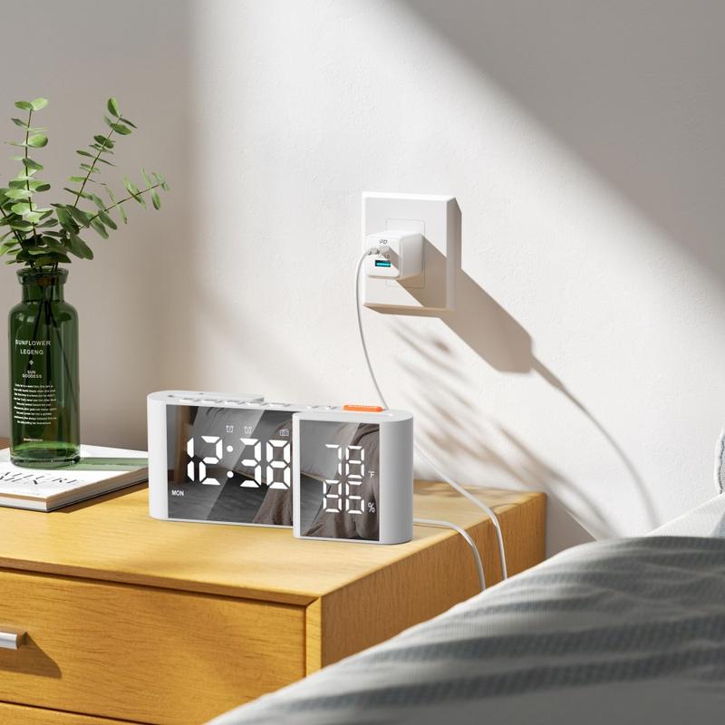6-tuumaisessa kaksois-LED-näytössä on kaksi toisiinsa liitettyä paneelia, jotka antavat selkeät, helposti luettavat tiedot. Peilattu etupinta lisää ensiluokkaista ilmettä, ja kaareva S-muotoinen runko sopii täydellisesti mihin tahansa moderniin makuuhuoneeseen, toimistoon tai asuintilaan.