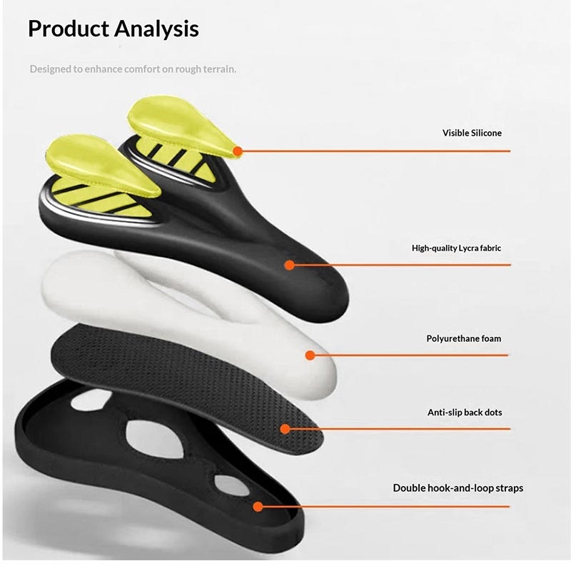 Enlee EN-330 Vedenkestävä polkupyörän satulapeite silikonipehmusteella - yleiskäyttöinen kivunlievittävä satulapeite maantie-, maasto- ja gravel-pyörille