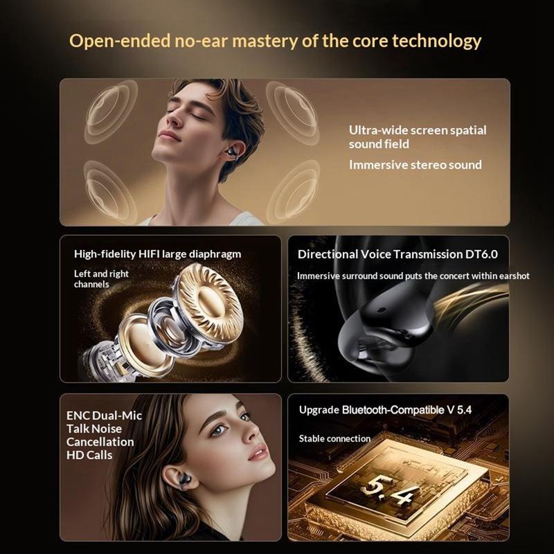 ERAZER EX05 avoimet, kiinnitettävät langattomat kuulokkeet – Bluetooth 5.4 -urheilukuulokkeet latauskotelolla