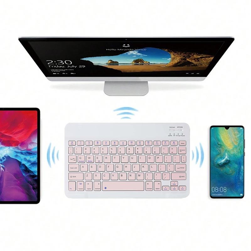 Tämä näppäimistö yhdistyy Bluetooth-yhteydellä ja tukee monenlaisia laitteita, kuten tabletteja ja älypuhelimia sellaisilta tuotemerkeiltä kuin iPad, Huawei, Xiaomi ja monet muut. Nauti vakaasta langattomasta suorituskyvystä ilman kaapeleita, mikä tekee siitä ihanteellisen joustaviin työympäristöihin.