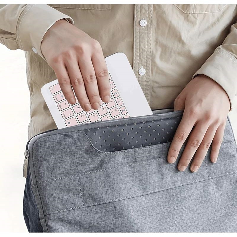Vain 0,6 cm:n paksuuden ja vain 114 g:n painon ansiosta näppäimistö on helppo kuljettaa repussa, kannettavan tietokoneen laukussa tai käsilaukussa. Se sopii täydellisesti tien päällä työskentelyyn, opiskeluun, matkustamiseen tai tabletin kanssa käyttämiseen.