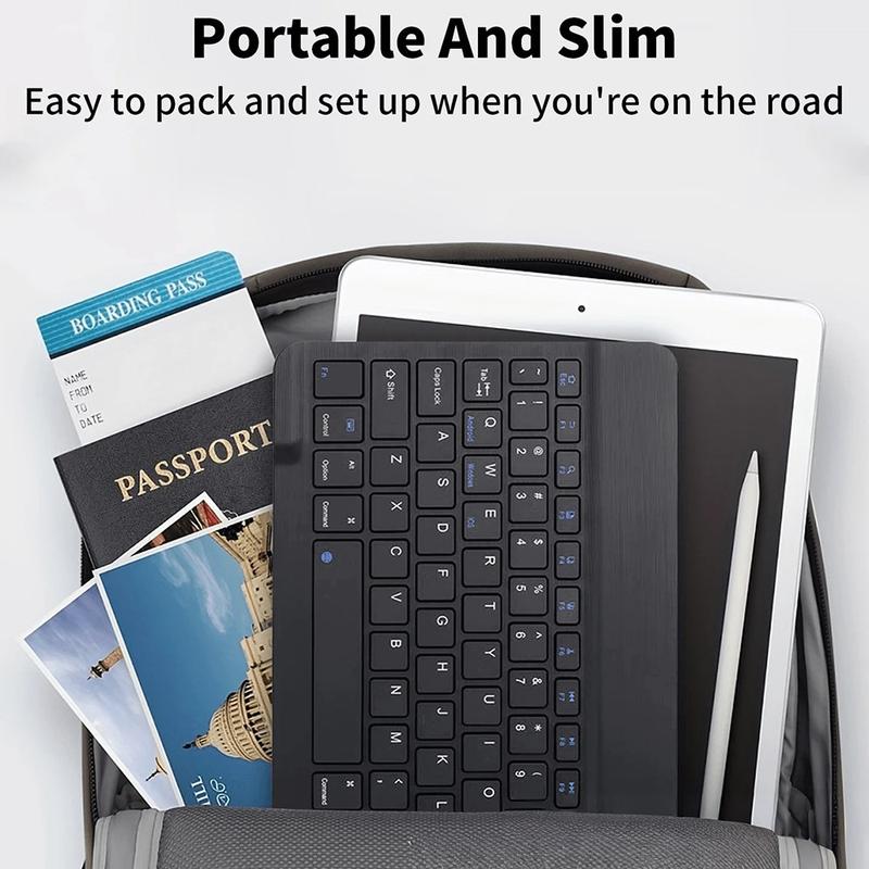Vain 0,6 cm:n paksuuden ja vain 114 g:n painon ansiosta näppäimistö on helppo kuljettaa repussa, kannettavan tietokoneen laukussa tai käsilaukussa. Se sopii täydellisesti tien päällä työskentelyyn, opiskeluun, matkustamiseen tai tabletin kanssa käyttämiseen.