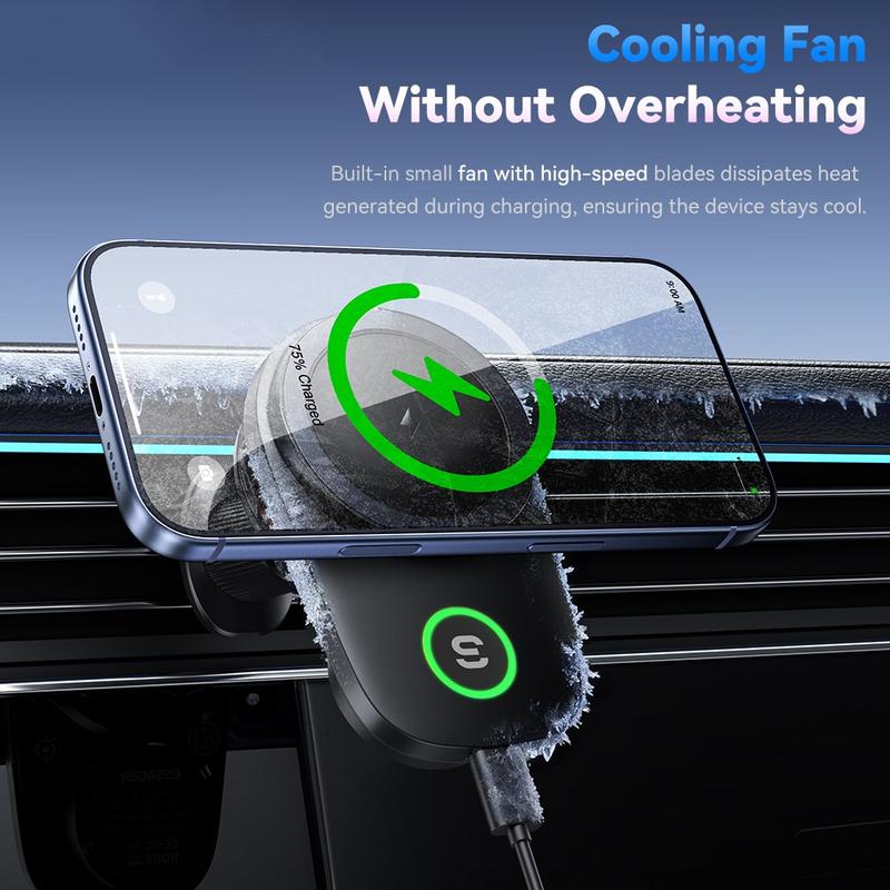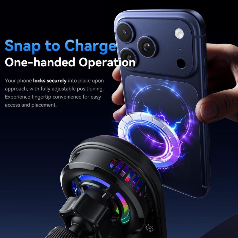 Tämä on enemmän kuin pelkkä perusautoteline. Se tarjoaa nopean latauksen, vahvan magneettisen pidon ja turvallisemman tavan pitää puhelimesi näkyvillä ajon aikana. Sisäänrakennettu tuuletin auttaa ylläpitämään vakaampaa lataustehoa, ja lukittava tuuletusklipsi on suunniteltu pysymään tukevasti paikallaan myös epätasaisilla teillä. Se on älykäs päivitys kaikille, jotka haluavat vähemmän kaapeliseikkaa, helpompaa yhden käden käyttöä ja entistä laadukkaamman autokokoonpanon.