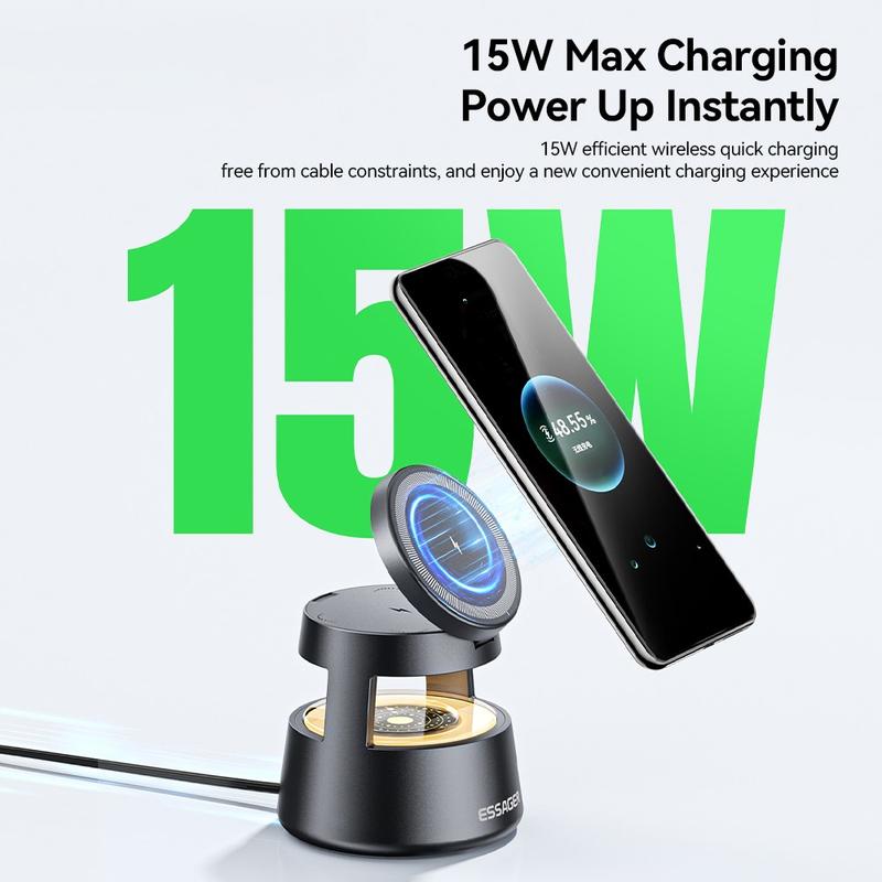 Essager 4-in-1 magneettinen langaton latausteline - 15W pikalatausteline yövalolla varustettuna
