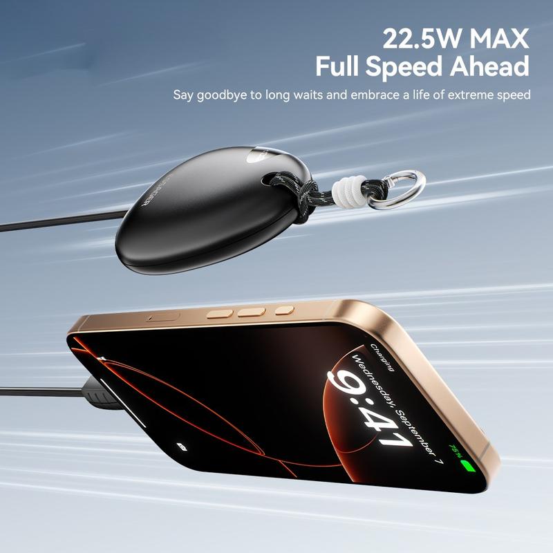 ESSAGER 10000mAh Fast Charging Power Bank tarjoaa luotettavaa virtaa liikkeellä ollessasi sisäänrakennetulla 70 cm:n sisäänvedettävällä C-tyypin kaapelilla. Se on suunniteltu matkustamiseen, työmatkoihin ja ulkokäyttöön, ja se tarjoaa jopa 22,5 W:n pikalatauksen pysyen samalla kompaktina, kevyenä ja helppokulkuisena integroidun karabiiniklipsin ansiosta.