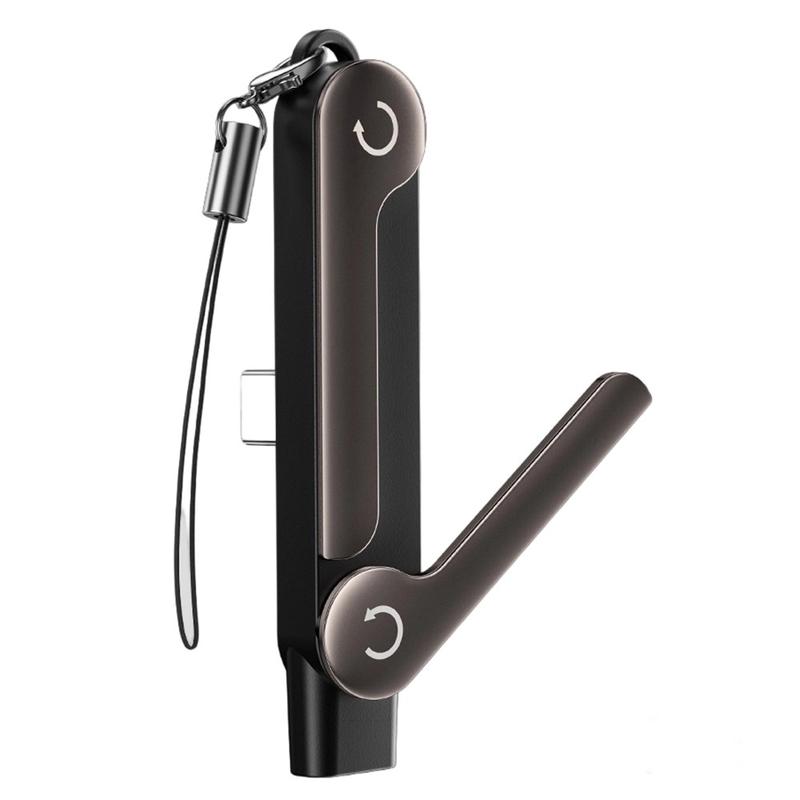 - 2-in-1-muotoilu, jossa yhdistyvät USB-C-sovitin ja taitettava puhelinteline