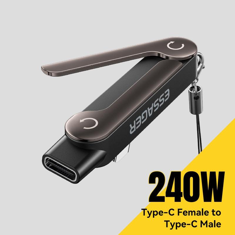 Essagerin L-muotoinen USB-C-naaras–USB-C-uros-sovitin taitettavalla telineellä, 240 W:n pikalataus, 40 Gbps