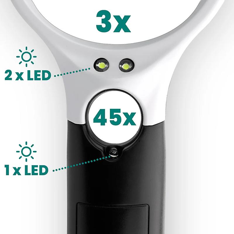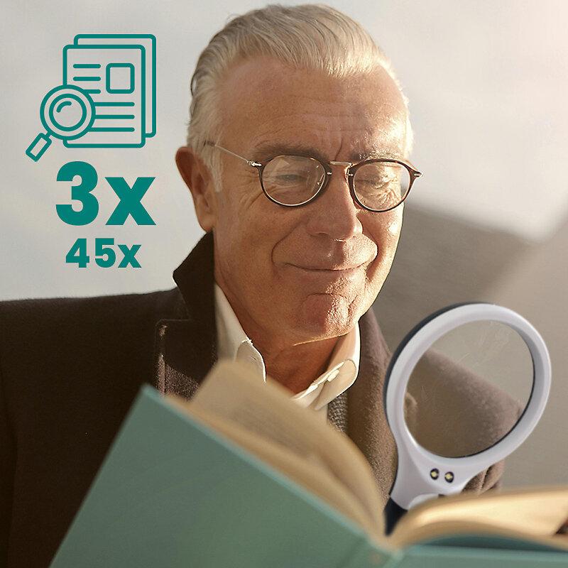 EverActive MG-01 suurennuslasi LED-taustavalolla - 3x suuri linssi ja 45x minilinssi, 3x AAA-paristokäyttöinen