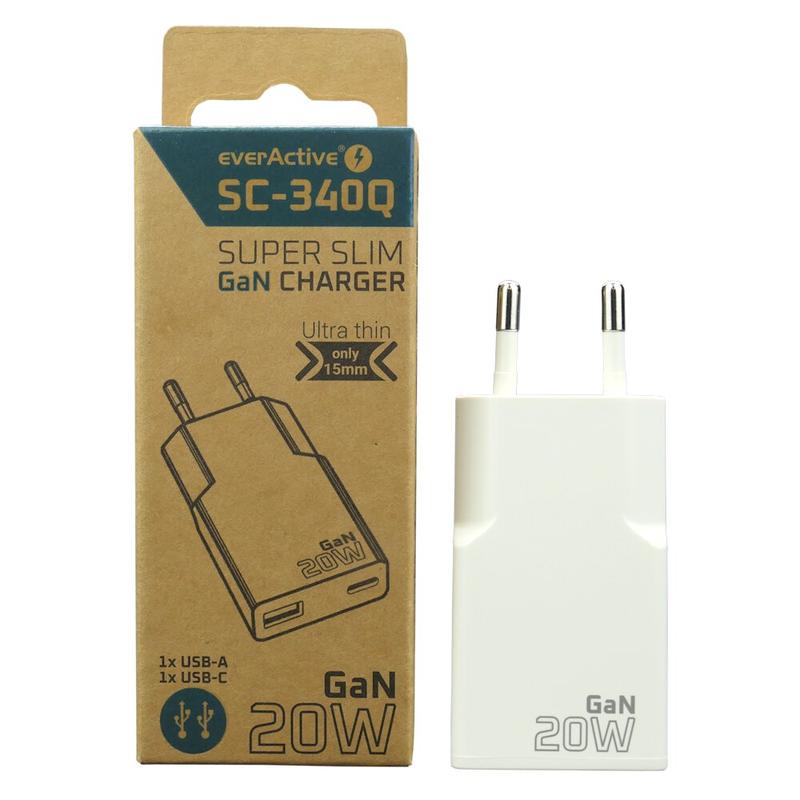 everActive SC-340Q GaN Super Slim 20W seinälaturi, jossa on USB QC3.0 & USB-C PD-portit