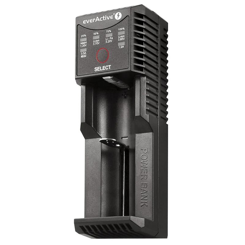 EverActive UC-100C USB-C-yleisakkulaturi, jossa on Power Bank -toiminto sylinterimäisille Li-ion- ja Ni-MH-akuille