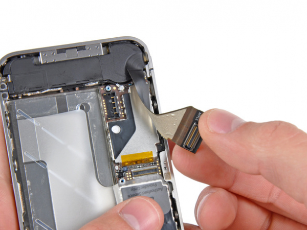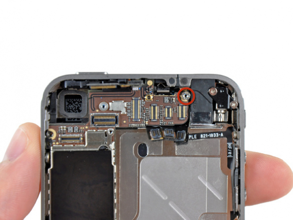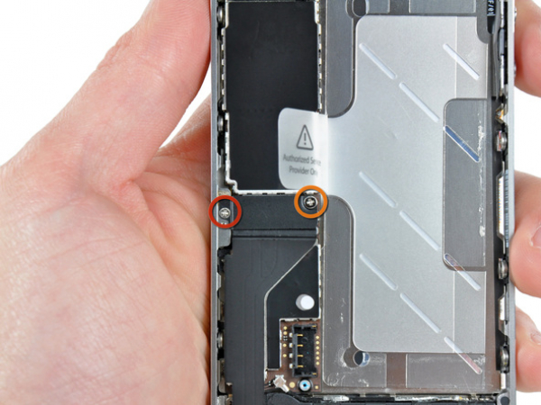 Irrota Wi-Fi-antenni iPhonesta. Pidä huoli, ettet hukkaa metallikiinnikkeitä, jotka sijaitsevat suojuksen yläosassa, johon 4,8 mm:n ruuvi kiinnittyy, tai 4,8 mm:n ruuvia. Se on usein syynä Wi-Fi:n epätavalliseen toimimiseen uudelleen kokoamisen jälkeen.