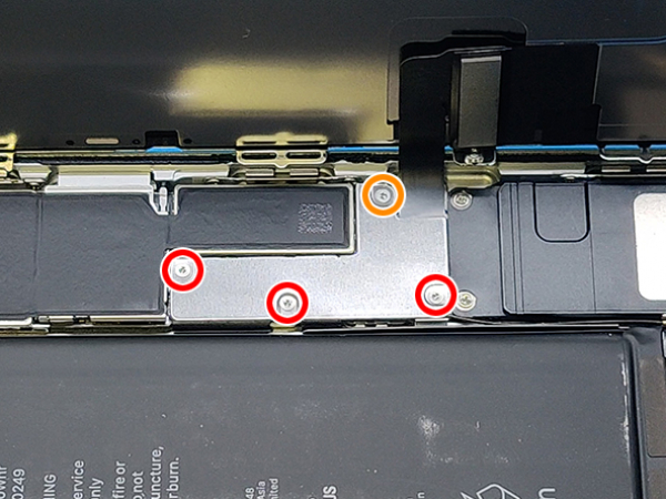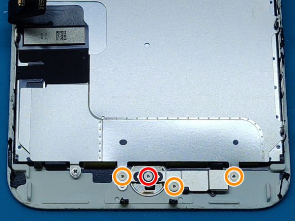 Poista neljä Y000-ruuvia, joilla kiinnike kiinnitetään kotipainikkeen/ Touch ID -anturi alueella