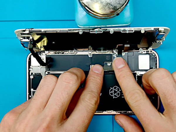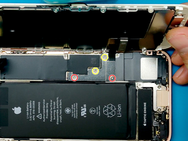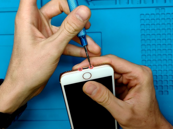 Viimeistele korjaus kahdella 3,5 mm pentalobe-ruuvilla, jotka ovat iPhonen alareunassa lähellä Lightning-porttia.