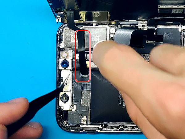 Säännöllinen korjaus edellyttää, että irrotat haptisen moottorin, jotta voit tehdä polun liimanauhoille.