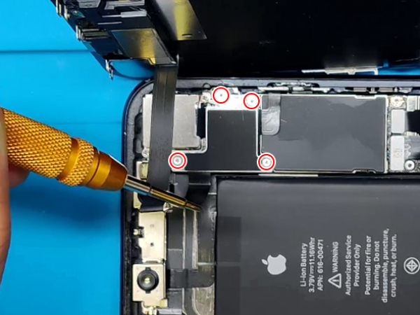 Poista viisi ruuvia, jotka kiinnittävät logiikkakortin liitinkappaleen.