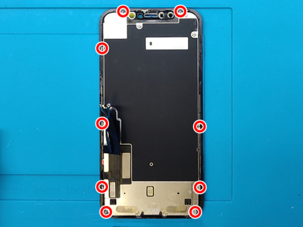 Poista yhteensä 9 ruuvia LCD-pidikkeistä.