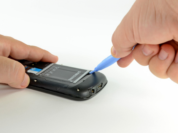 Työnnä muovinen avaustyökalu varovaisesti takapaneelin ja sisemmän takarungon väliin lähellä takakameraa.