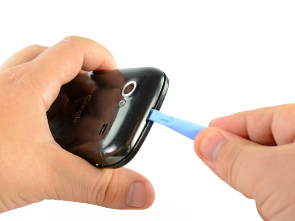 Työnnä muovinen avaustyökalu varovaisesti takapaneelin ja sisemmän takarungon väliin lähellä takakameraa.