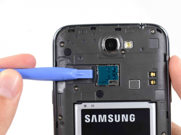 Työnnä muovinen avaustyökalu (jos sinulla ei ole sellaista, käytä kynttäsi) pieneen koloon, joka sijaitsee takakameran vasemmalla puolella (lähellä virtapainiketta), ja väännä takakuorta irti.