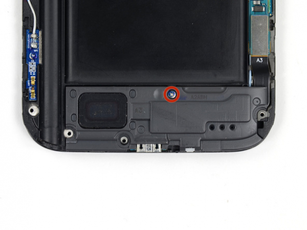 Irrota 11 ristipääruuvia (4,0 mm), jotka kiinnittävät keskikehyksen näyttömoduuliin.