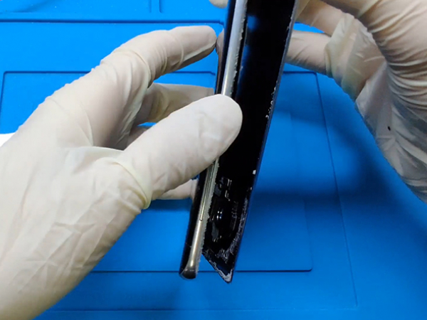 Liu'uta litteä metallinen ruisku (terä) takalasin ja puhelimen kehyksen väliin.