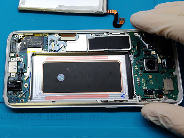 Poista muovikappale, joka peittää emolevyn NFC-antennia ja latauskelaa pitkin.