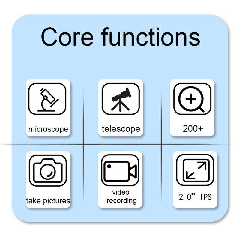F1 Digitaalinen mikroskooppi ja kaukoputki lapsille - 2″ IPS-näyttö