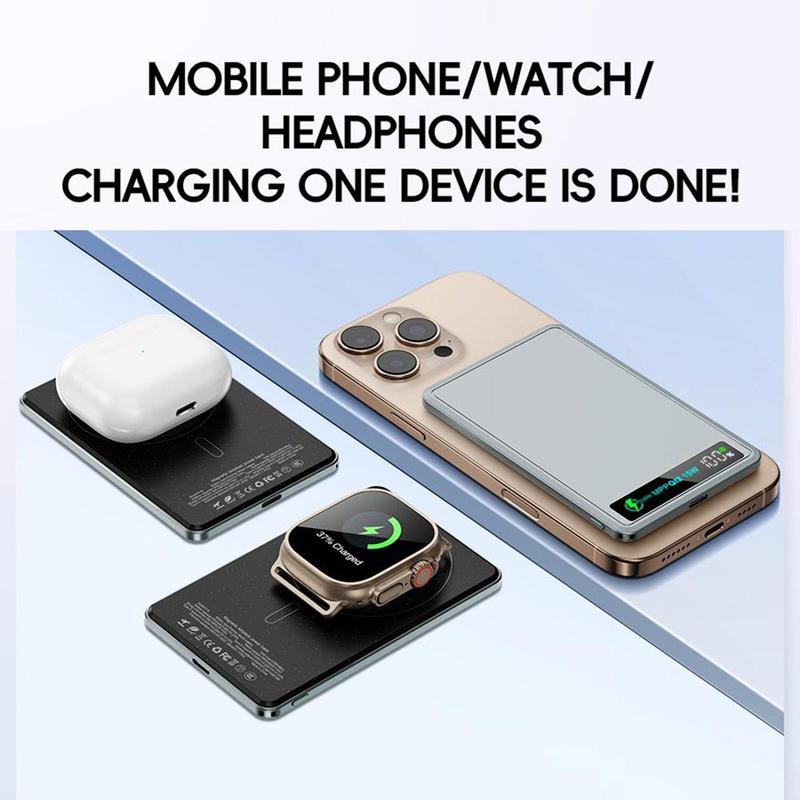 10000mAh:n kapasiteetillaan tämä powerbank tarjoaa hyödyllisen tasapainon kannettavuuden ja varavirtalähteen välillä. Se sopii hyvin päivittäisiin rutiineihin, olitpa sitten matkalla, etätyössä, kokouksissa tai haluat vain pitää luotettavan hätälaturin lähellä. Tällaiset magneettiset powerbankit ovat erityisen suosittuja, koska ne vähentävät kaapelien sotkua ja pitävät lataamisen nopeana ja kätevänä.