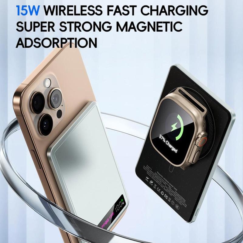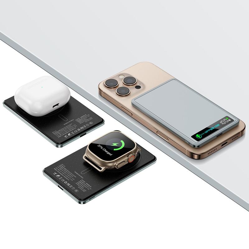 10000mAh:n kapasiteetillaan tämä powerbank tarjoaa hyödyllisen tasapainon kannettavuuden ja varavirtalähteen välillä. Se sopii hyvin päivittäisiin rutiineihin, olitpa sitten matkalla, etätyössä, kokouksissa tai haluat vain pitää luotettavan hätälaturin lähellä. Tällaiset magneettiset powerbankit ovat erityisen suosittuja, koska ne vähentävät kaapelien sotkua ja pitävät lataamisen nopeana ja kätevänä.