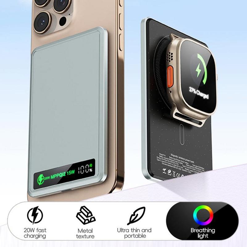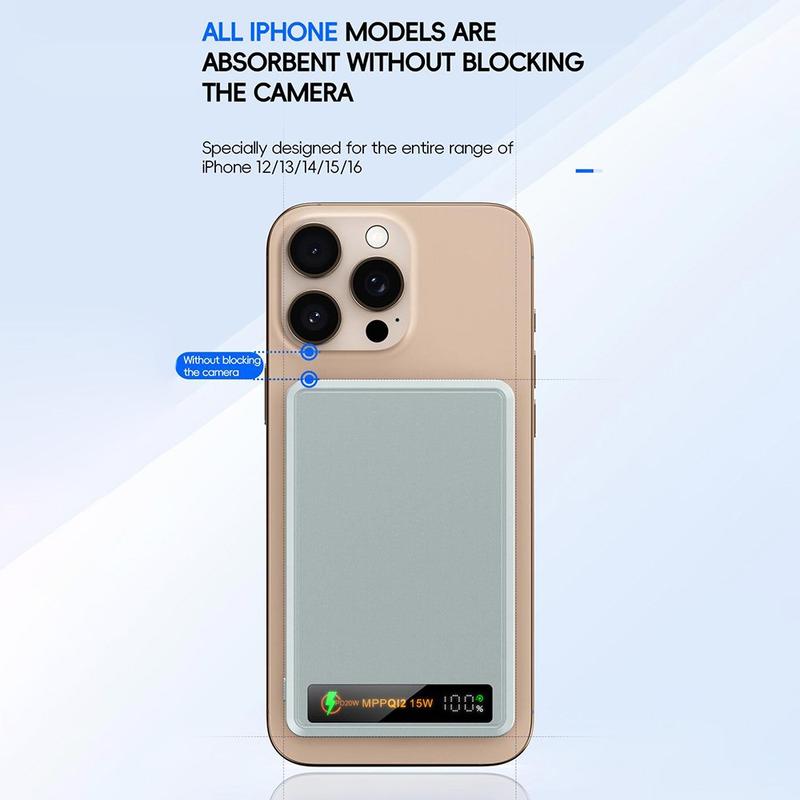 F16 Erittäin ohut 10000mAh:n magneettinen varavirtalähde, jossa on 15 W:n langaton lataus, 20 W:n PD USB-C -liitäntä ja digitaalinen näyttö - MagSafe-yhteensopiva - iPhone, AirPods ja Apple Watch