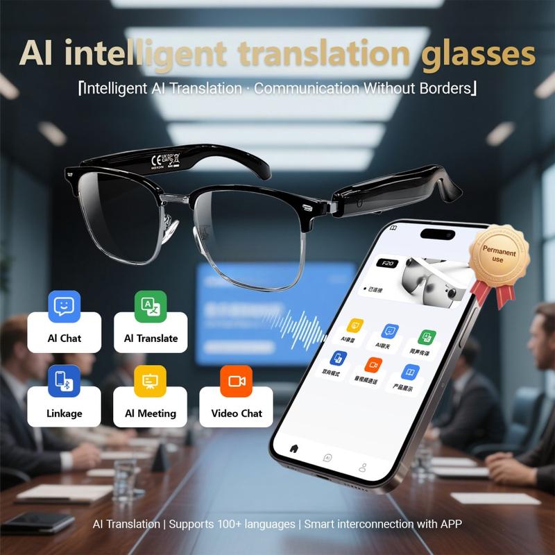 F20 AI Translation -älylasit yhdistävät älykkään teknologian ja tyylikkään muotoilun ja tarjoavat monikäyttöisen puettavan silmälasin, joka sopii erinomaisesti matkoille, liike-elämään ja jokapäiväiseen käyttöön. Nämä älylasit, joissa on tekoälyllä toimiva käännös, murtavat kielimuurit reaaliajassa, mikä tekee niistä ihanteelliset kansainväliseen viestintään. Ne tukevat myös Bluetooth 5.4 -musiikin toistoa, puheluita, ääniavustajan ohjausta ja jopa valokuvien kaukokuvausta - ja kaikki tämä kevyessä silmälasimallissa. F20 on yhtä käytännöllinen kuin innovatiivinenkin, sillä siinä on kaksi Type-C-latausta ja pitkäkestoinen akku.