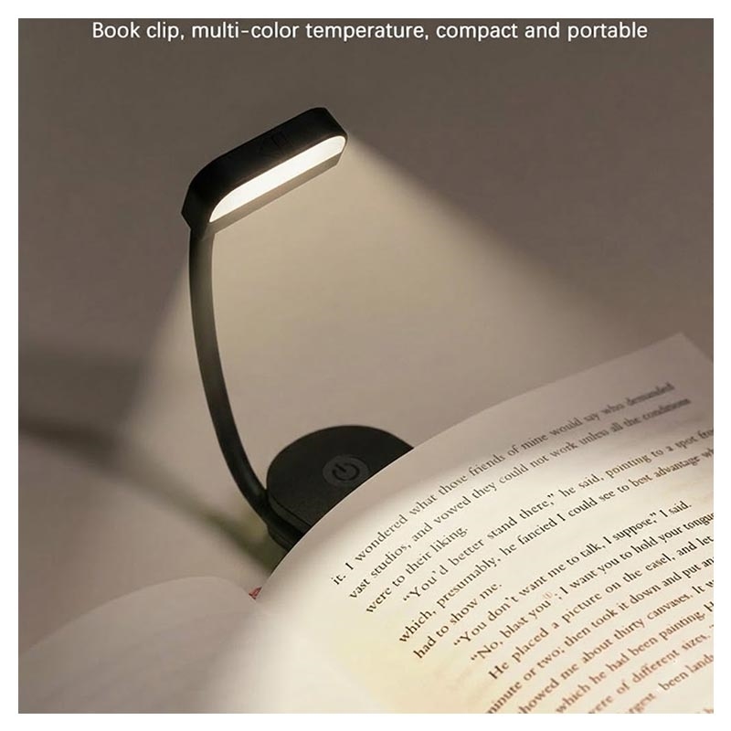 F26 kiinnitettävä LED-lukulamppu - pienikokoinen kirjalamppu, jossa on 3 värilämpötilaa, 3 kirkkaustasoa ja USB-C-lataus