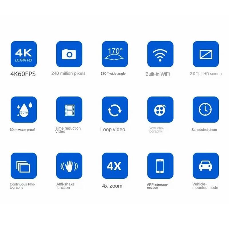 F300AB-R 2 tuuman 4K WiFi-toimintakamera kosketusnäytöllä ja 30 metrin vedenalaisella kotelolla