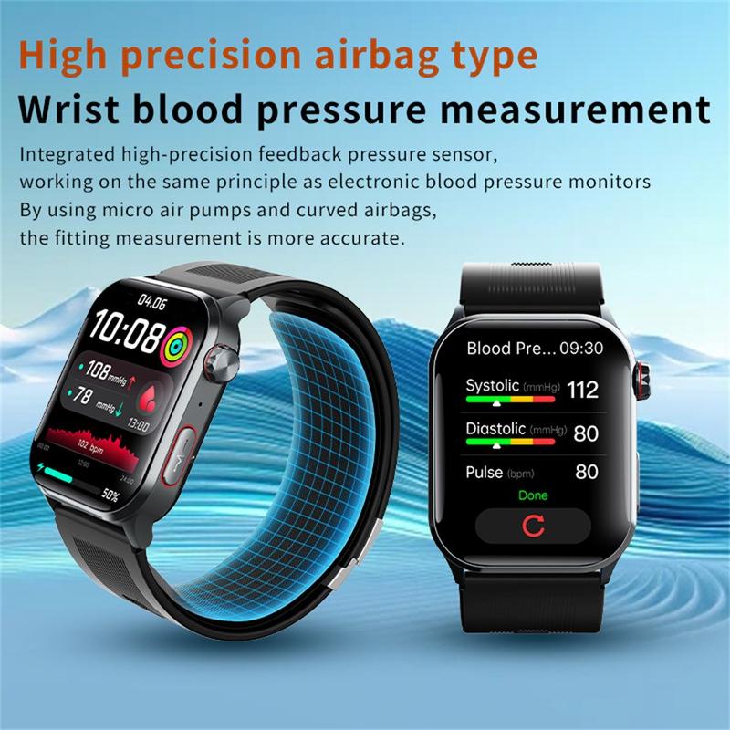 F530 Air Pump Blood Pressure Smart Watch -älykello on suunniteltu käyttäjille, jotka haluavat syvempää tietoa fyysisestä ja henkisestä hyvinvoinnistaan. Integroitu EKG-seuranta, 24 tunnin dynaaminen sykeseuranta ja hiljaisella Murata-pietsosähköisellä mikropuhaltimella toimiva oskillometrinen verenpaineen mittaus tuottavat yksityiskohtaisia terveystietoja suoraan ranteeseesi. Yhdessä tieteellisen unianalyysin, stressin ja tunteiden hallinnan sekä moniparametrisen terveydentilan seurannan kanssa F530 toimii kompaktina päivittäisenä terveystarkastuksena.