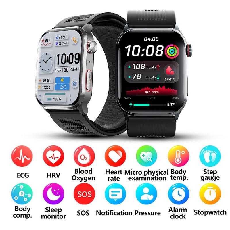 F530 älykello ilmapumpulla verenpaine, EKG, syke ja unen seuranta - SOS-pudotushälytys, 2.1" IPS-näyttö
