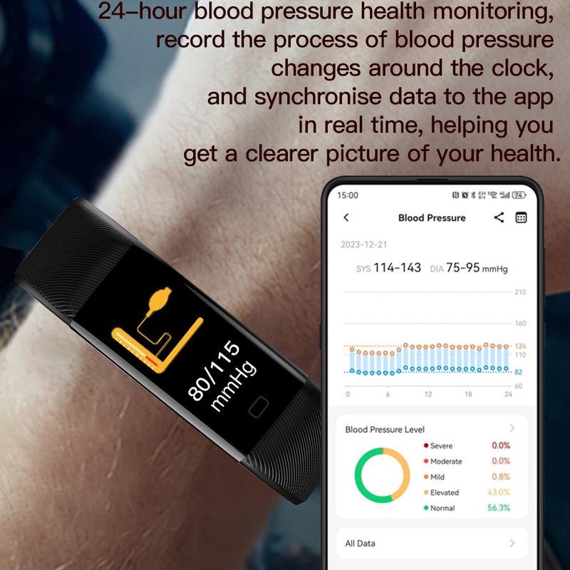 F71-älyrannekkeessa on monipuolinen terveysseuranta, jossa on sykkeen, veren hapen (SpO₂), verenpaineen ja ruumiinlämmön seuranta. Täydellinen, kun haluat pitää silmällä hyvinvointiasi koko päivän ajan.