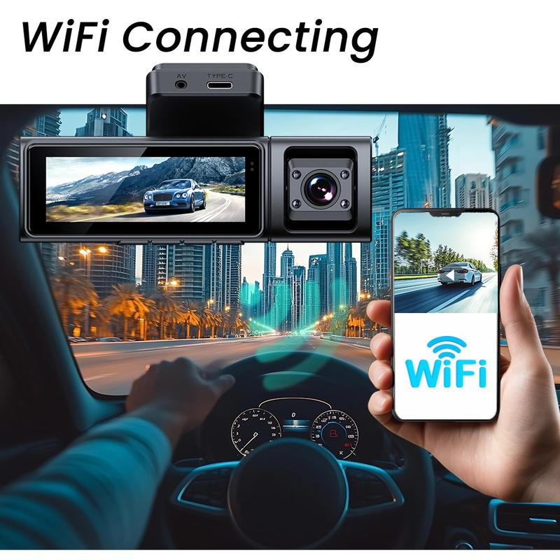 F9 3-kanavainen ajokamera GPS:llä - 4K-etukamera, 1080P-sisä- ja takakamera, WiFi-sovelluksen ohjaus ja yönäkö