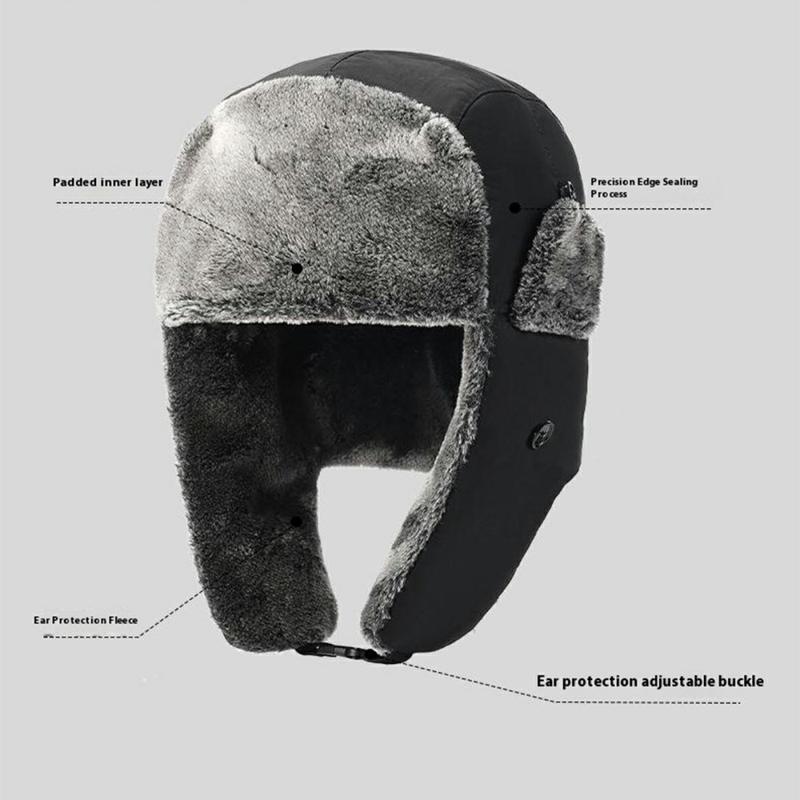 Talvihaalarihattu - Fleece-vuorattu paksu lämmin ulkoilulakki, jossa on korvasuojaus ja tuulenpitävä muotoilu.
