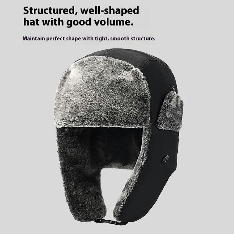 Talvihaalarihattu - Fleece-vuorattu paksu lämmin ulkoilulakki, jossa on korvasuojaus ja tuulenpitävä muotoilu.