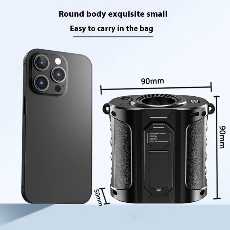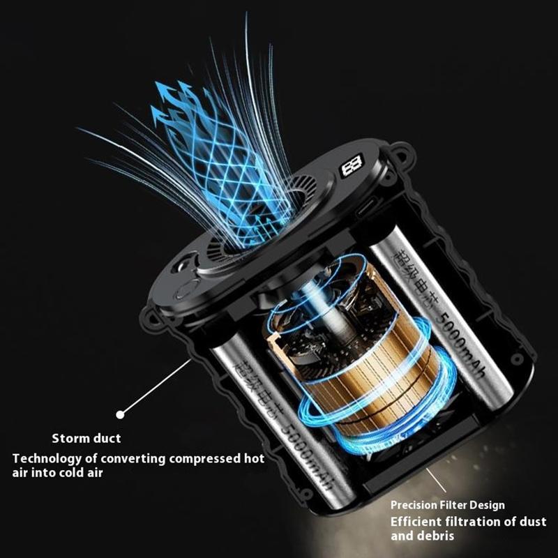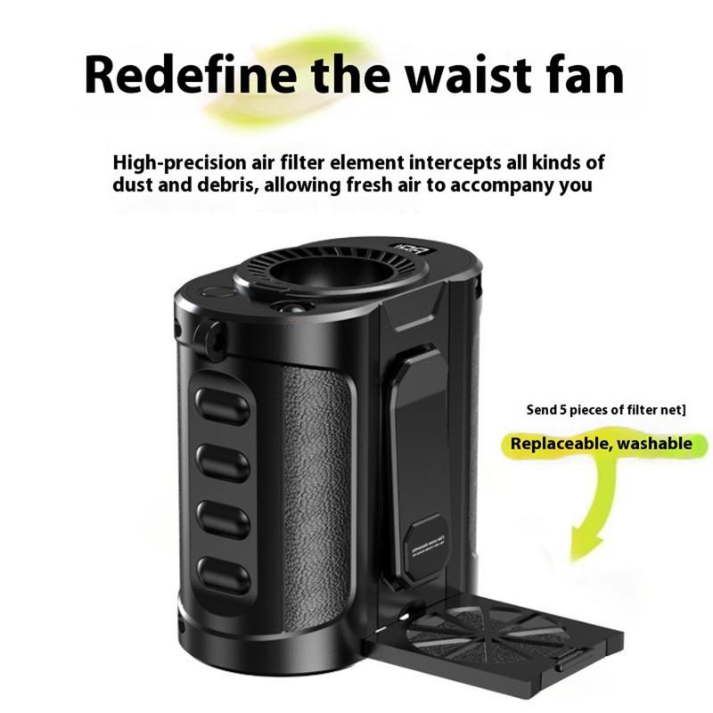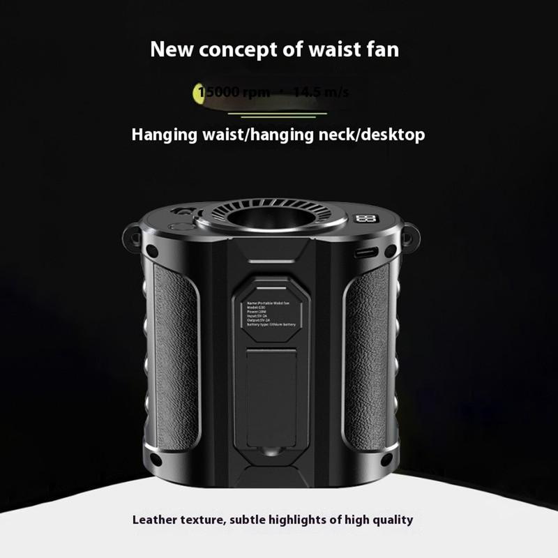 Pysy viileänä liikkeellä G30-kannettavan vyötärötuulettimen avulla, joka on suunniteltu kädet vapaana pysyvään ilmankiertoon työn, ulkoilun ja matkojen aikana. Kiinnitä se vyöhön jatkuvaa viilennystä varten tai aseta se mukana toimitetulle jalustalle pöytäkäyttöön kotona, toimistossa tai teltassa. Nopea 15000 RPM:n harjaton turbiinimoottori tuottaa voimakkaan ilmavirran, ja 5 nopeustasoa mahdollistavat tuulen säätämisen muuttuvien lämpötilojen ja toiminnan intensiteetin mukaan.