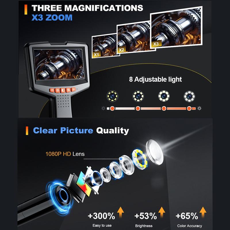 Tämä endoskooppi on varustettu halkaisijaltaan 8 mm:n kameralla ja 8 säädettävällä LED-valolla, joten se takaa erinomaisen näkyvyyden pimeissä, ahtaissa tai monimutkaisissa ympäristöissä. Ihanteellinen mekaaniseen tarkastukseen, putkityöhön, autojen diagnostiikkaan ja kodin kunnossapitoon.