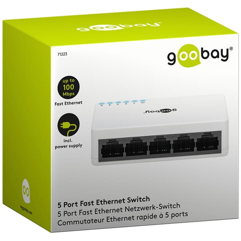 - Plug and Play - Goobay 5-porttinen nopea Ethernet-kytkin ei vaadi ohjelmistoja