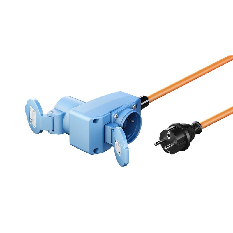 Goobay CEE-sovitinkaapeli 1.5m - turvapistoke (tyyppi E/F) 90° CEE-liittimeen turvapistorasialla, IP44-ulkovirtajohto, IP44-ulkovirtajohto