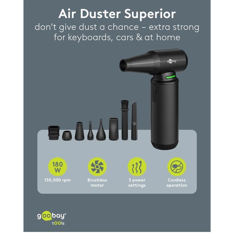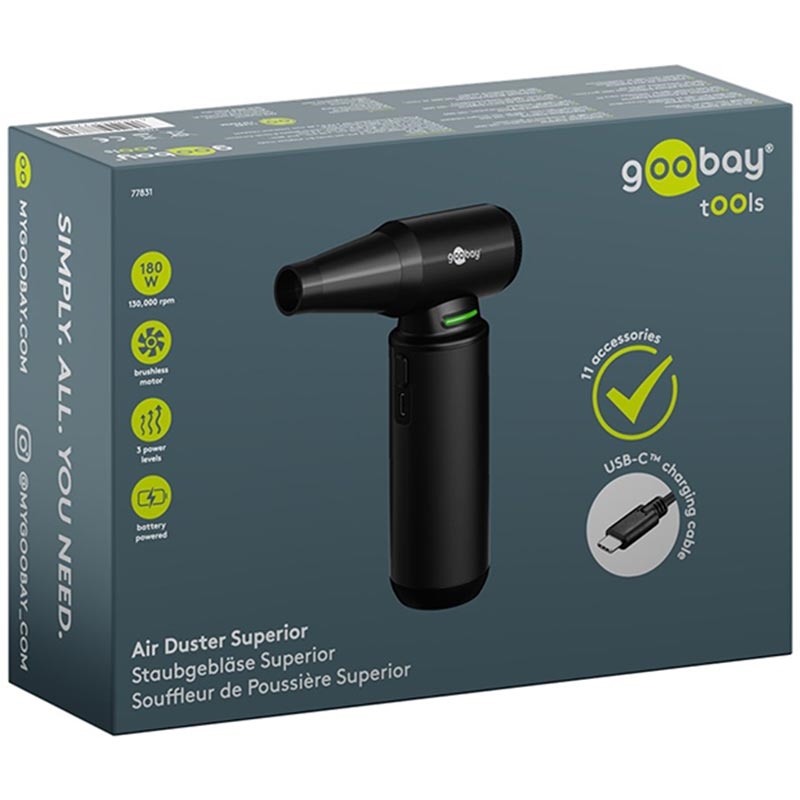 Goobay paineilmapöly Superior - 130000rpm johdoton sähköinen ilmapuhallin 8 suuttimella ja 3 harjalla (180 W, alumiininen muotoilu)