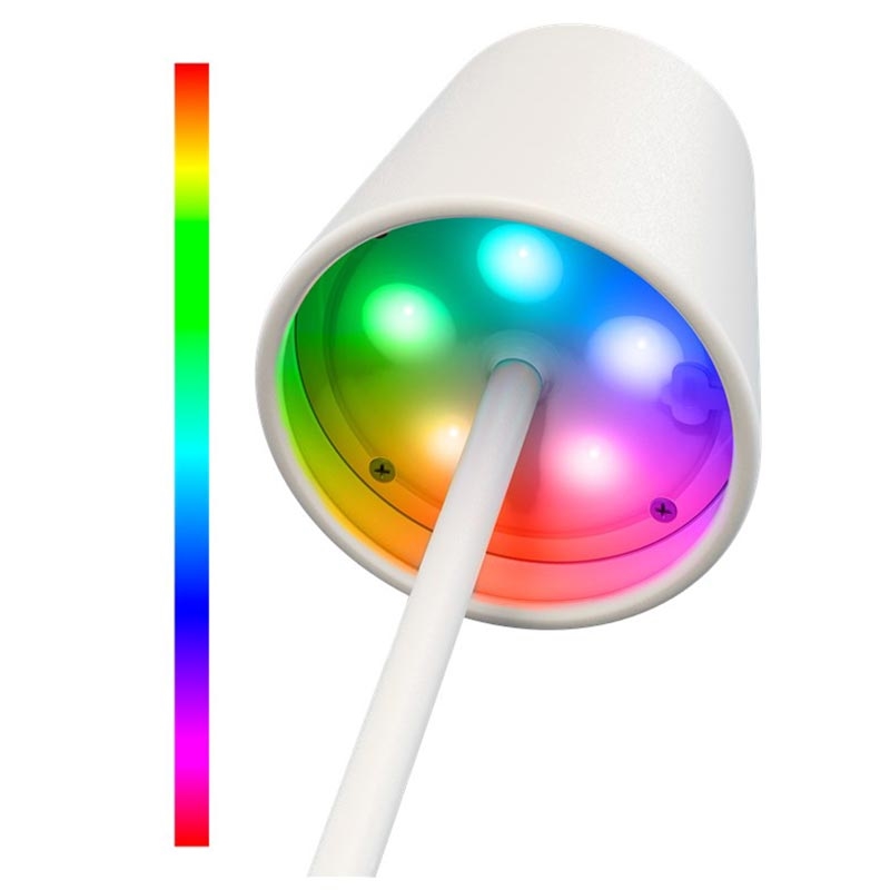 Luo täydellinen tunnelma mihin tahansa langattomalla RGBW LED-pöytävalaisimella. Minimalistisella skandinaavisella tyylillä suunniteltu ja tukevasta metallista valmistettu valaisin näyttää tyylikkäältä olohuoneessa, makuuhuoneessa, toimistossa ja ravintolassa - ja se on yhtä vaikuttava ulkona puutarhajuhlissa. Kosketusohjauksella voit kytkeä valaisimen päälle ja pois päältä, valita lukuisista RGBW-väreistä tai lämpimästä valkoisesta 3000 K:sta ja nauttia loputtomasta himmennyksestä pitkällä kosketuksella. Sisäänrakennettu ladattava 18650 Li-ion-akku pitää lampun johdottomana ja tarjoaa jopa 6 tuntia täyttä kirkkautta ja jopa 20 tuntia heikkoa kirkkautta. IP44-roiskesuojauksen ansiosta se sopii erinomaisesti terasseille, parvekkeille ja katetuille ulkoilualueille.