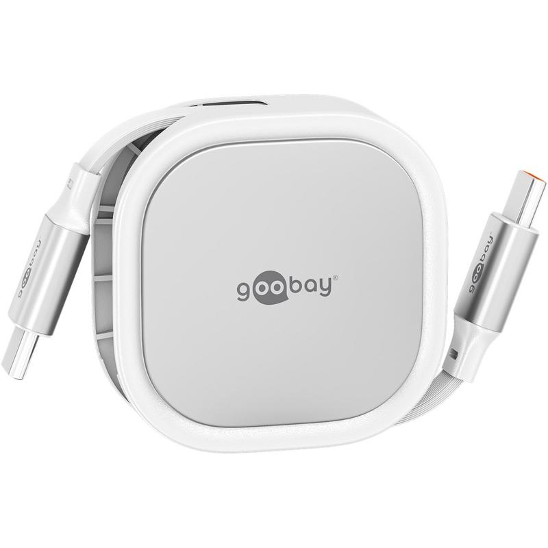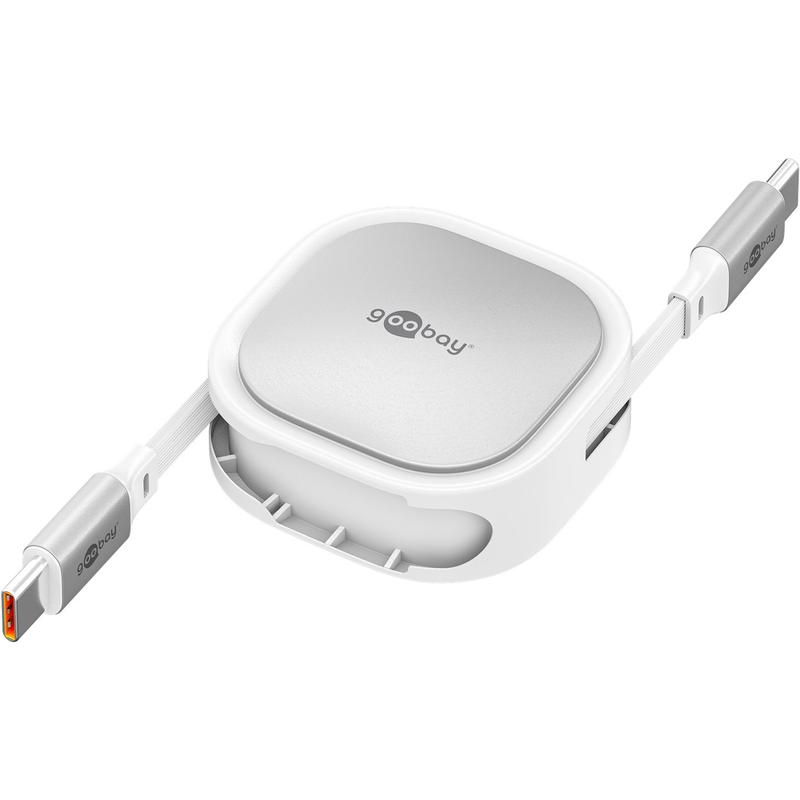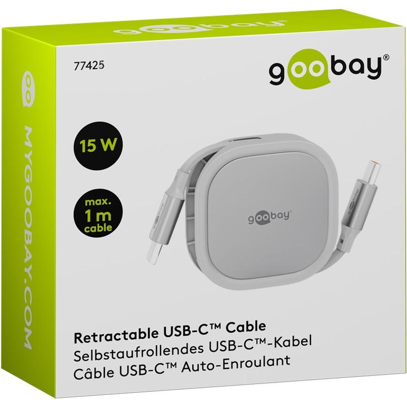 Goobay sisäänvedettävä USB-C-kaapeli - 1m litteä latauskaapeli 15W teholla ja automaattisella sisäänvedon mekanismilla varustettuna